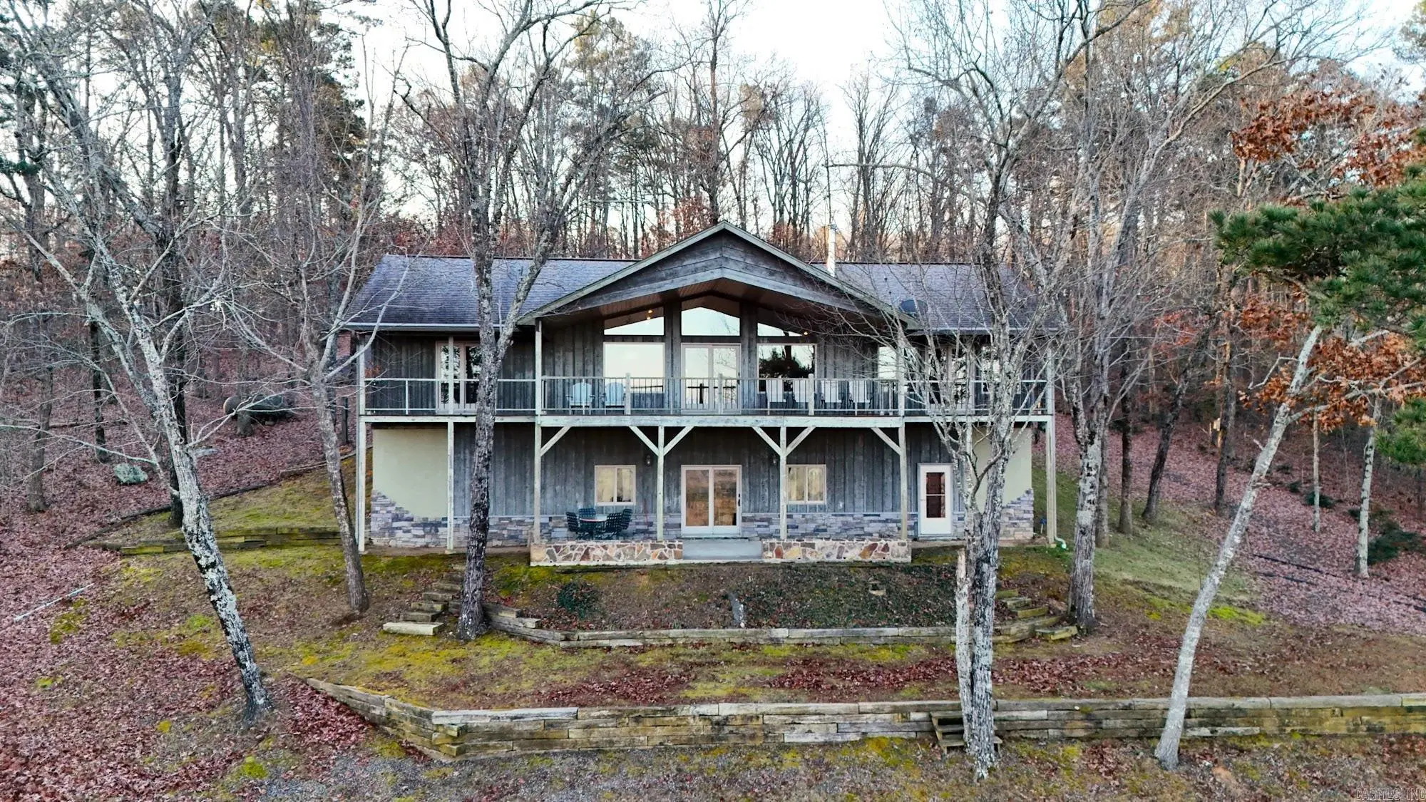 What a view!! Panoramic overlooking Sugarloaf Mountain, Little Red River and the valley. Pictures don't do it justice, must see. Whether just entertaining guest on the weekends or full time living this is comfortable home. Two bedrooms and two baths on main level, with kitchen/dining and a spacious sun room. Two bedrooms, a bath, partial kitchen/entertaining and a safe room downstairs. Both levels offer walk outs with porches to take in the view, did I mention the VIEW? Schedule a showing and don't miss this one. Measurements are encouraged. Agents see agent remarks.