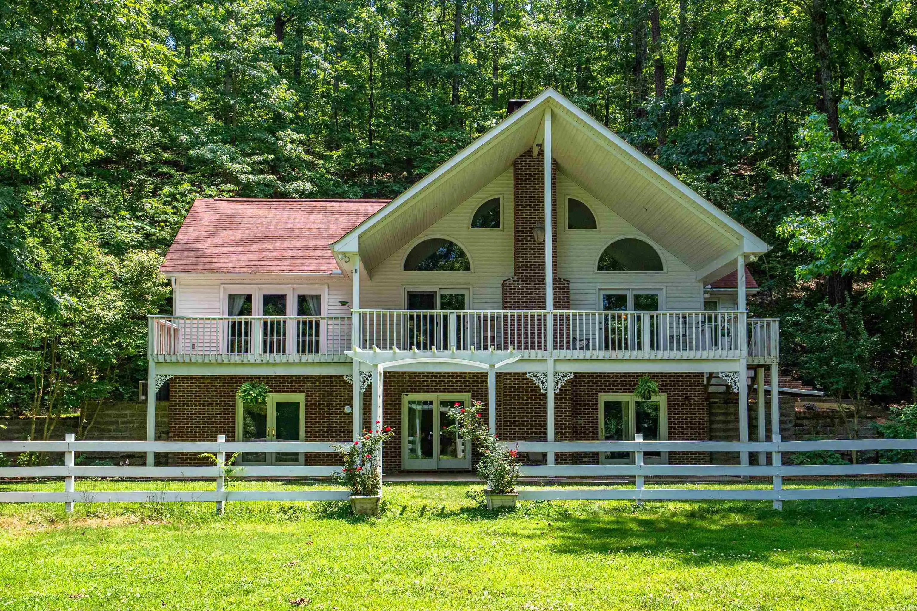 PRIVATE OASIS – 13 ACRES – BARN & POOL – GATED COMMUNITY Experience peaceful country living in this beautifully maintained 3-bedroom, 2-bath home on 13 private acres within a small gated community. Move-in ready and thoughtfully updated, this property features an above-ground pool, 4-stall barn with tack room, chicken coop, fenced garden, greenhouse, and approx. 6 acres of fenced pasture across 3 lots. The 2-car garage includes convenient upper-level storage. Inside, a spacious open floor plan welcomes you with cathedral ceilings, wood floors, and a cozy fireplace. The dining area is framed by French doors and windows filling the home with natural light. The well-equipped kitchen boasts stainless-steel appliances (new dishwasher 2023, microwave 2024) and a generous pantry. The primary suite offers a walk-in closet, private deck, and fully remodeled bath with soaking tub. Downstairs includes two large bedrooms with walk-in closets, a full bath, laundry, and family room. Enjoy the oversized covered porch, screened back deck, and tranquil wooded views. Recent updates: HVAC, well pump, water system, plumbing fixtures, and remodeled master bath. Call for your personal tour!