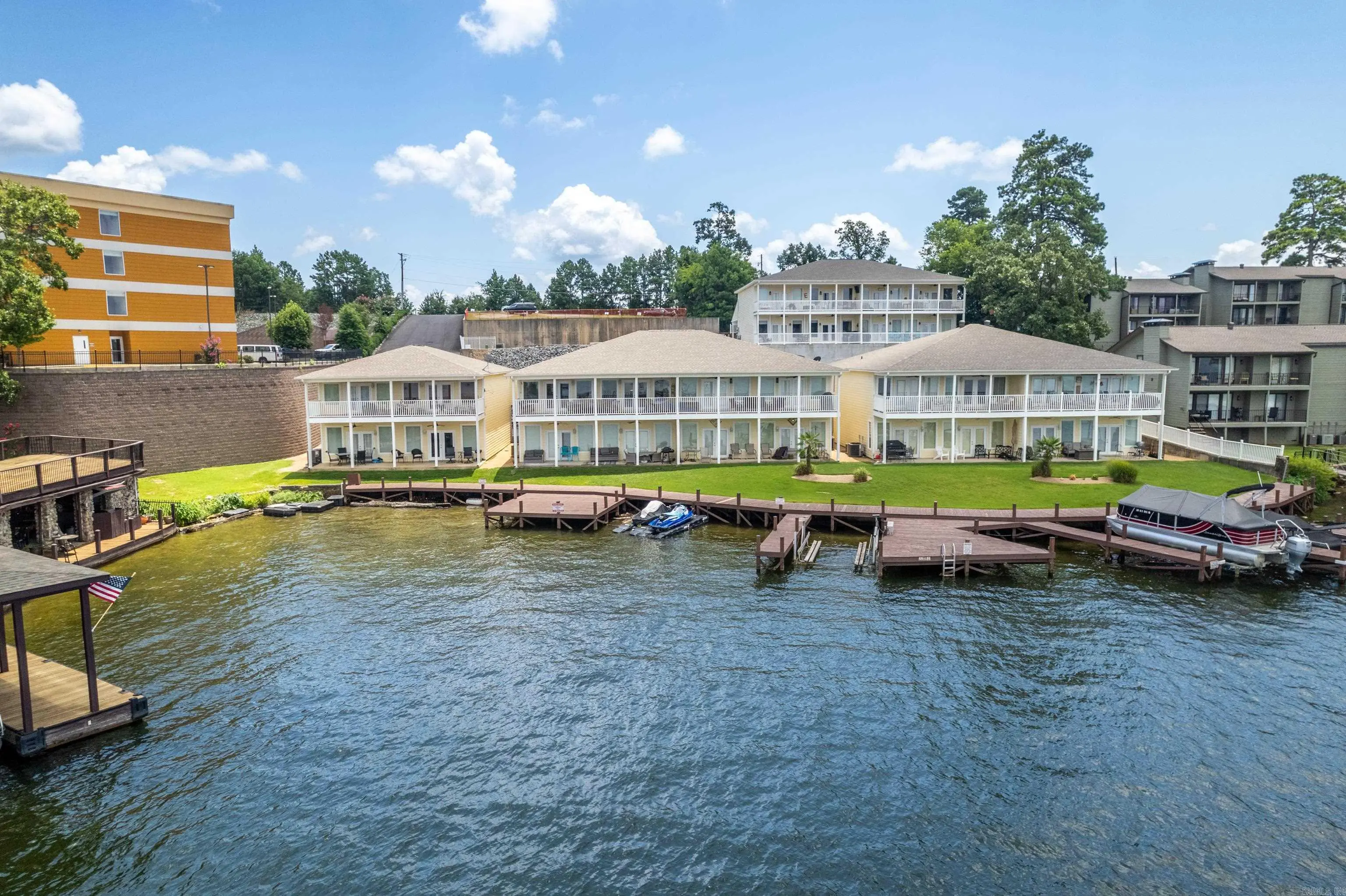 Enjoy breathtaking water views from this beautiful lakefront condo, perfectly positioned for both personal relaxation and income potential. This unit features an open concept layout, updated finishes, and a private balcony overlooking the lake—ideal for morning coffee or sunset cocktails. Located in a desirable community with an expansive boardwalk and swim dock. Approved for short-term rentals, this property on Seven (7) South is close to everything, less than five miles to Oaklawn Racing Casino Resort and a short distance to downtown Hot Springs, Arkansas. Whether you're looking to invest or unwind, this condo delivers the best of both worlds!