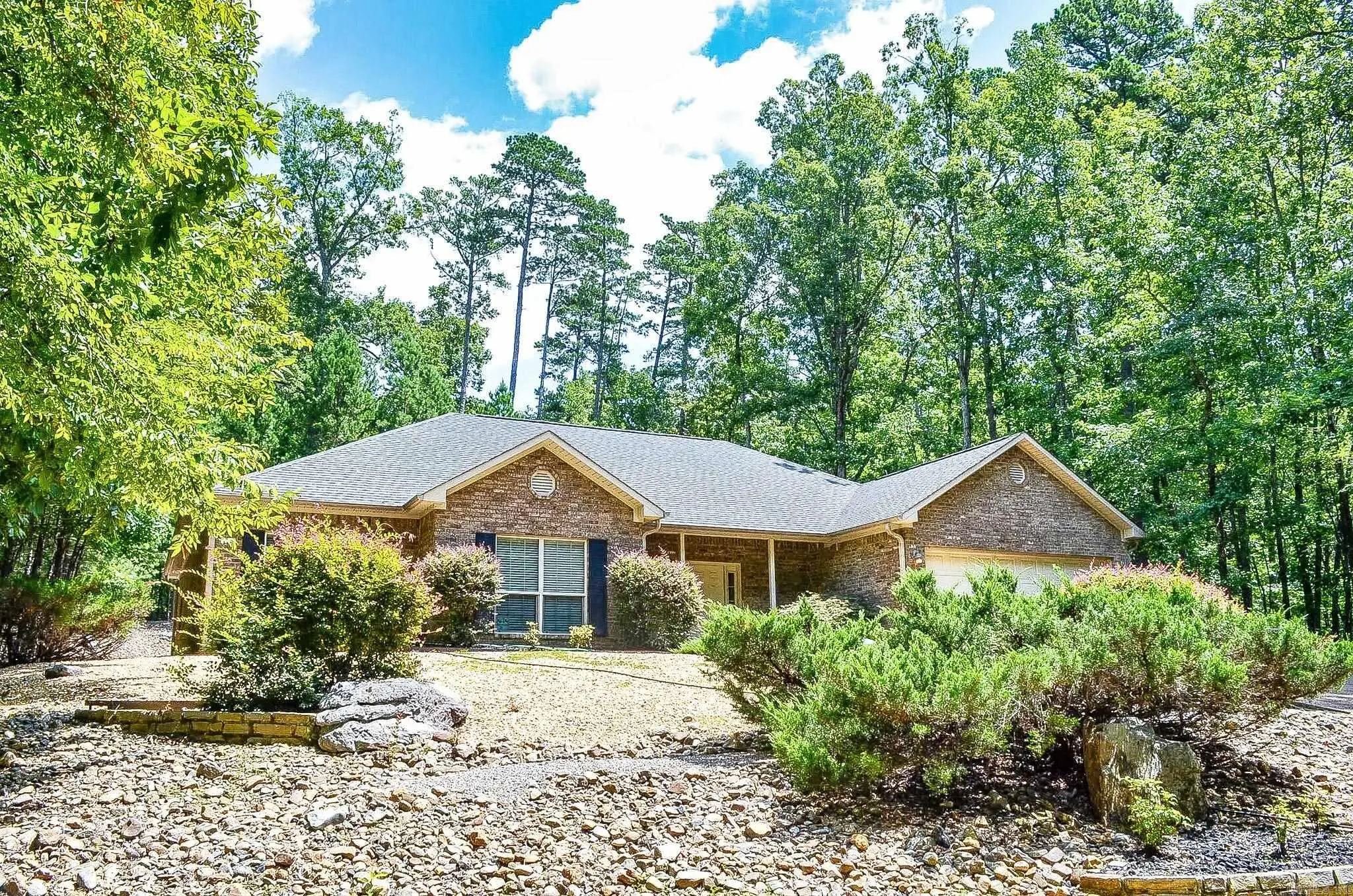 Beautiful 3 bed, 2 bath home on the outskirts of the village. This beautiful home is nicely secluded in the woods of Hot Springs Village, with only a few homes down the road. It's only 8 minutes from the Glazier Peau gate, making it very convenient for making trips to town. This property puts you at a good even distance from all of Hot Springs Village's 8 golf courses and 11 lakes, making it a great location. Beautiful backyard views of the forest, complete with a water feature. The entryway is very welcoming and has a nice foyer complete with tile floors and 2 coat closets. High ceilings throughout the home make this house feel very open. This home features a large open living room with plenty of space, including a very cozy fireplace. The Living Room leads in to a nice sized kitchen with an island, as well as dining area. The guest bedrooms are nicely sized each with walk-in closets and large windows, and share a nice sized bathroom. The Primary Bedroom has plenty of space and features an exit door out to the backyard, as well as a bathroom complete with a jacuzzi tub, walk-in shower, double vanity, and walk-in closet. The heat pump in this house is very new, replaced in 2021.