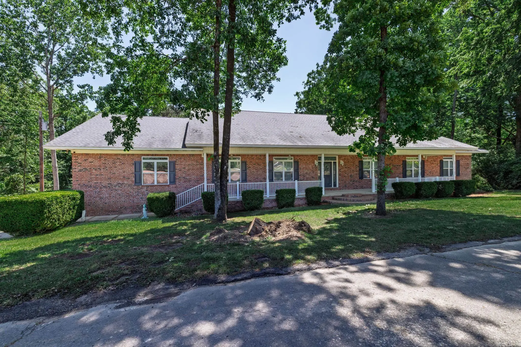 Welcome to your dream home situated just outside of Arkadelphia, nestled on over 2 acres of picturesque land. This stunning residence boasts 3 spacious bedrooms and 2 full baths, complemented by 2 additional half baths for convenience. As you step inside, you will be greeted by a beautiful open-concept living and kitchen area, perfect for entertaining or family gatherings. The kitchen features brand new appliances, ensuring a modern and functional space for your culinary adventures.The spacious den invites you to relax, complete with a cozy fireplace that adds warmth and charm. You'll love the new carpet that enhances the comfort of the living spaces throughout the home. Retreat to the luxurious master suite, which offers a huge walk-in shower and a soothing soaking tub, creating your own personal spa experience. The oversized garage provides ample storage and parking space, while the heated and cooled basement, equipped with a half bath, offers additional versatility for recreation or guest accommodations. Step outside to your beautiful sunroom, where you can unwind while overlooking the serene woods and creek—an idyllic spot for morning coffee or evening relaxation.