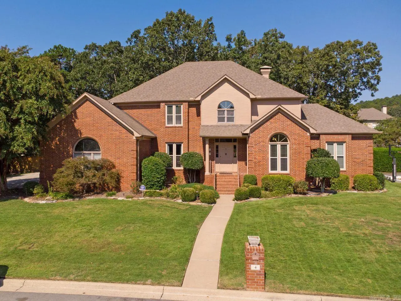 Welcome to this stately brick home in Chenal offering timeless curb appeal and inviting interiors. Nestled on a well-maintained lot with mature landscaping, this residence features a traditional two-story design accented by arched windows and classic architectural details. Fully fenced backyard and 3 car garage. Inside, you’ll find an elegant home office with custom built-in shelving and cabinetry, perfect for remote work or study. Natural light pours in through the large windows, creating a bright and inspiring space. The formal dining room offers warmth and character with hardwood flooring, crown molding, and French doors that open to the main living areas. The kitchen boasts double ovens, updated appliances and hardware along with an instant hot water tap. With its combination of thoughtful details, spacious layout, and welcoming design, this home is perfect for both everyday living and entertaining. Come warm up by the fireplace in the master bedroom.