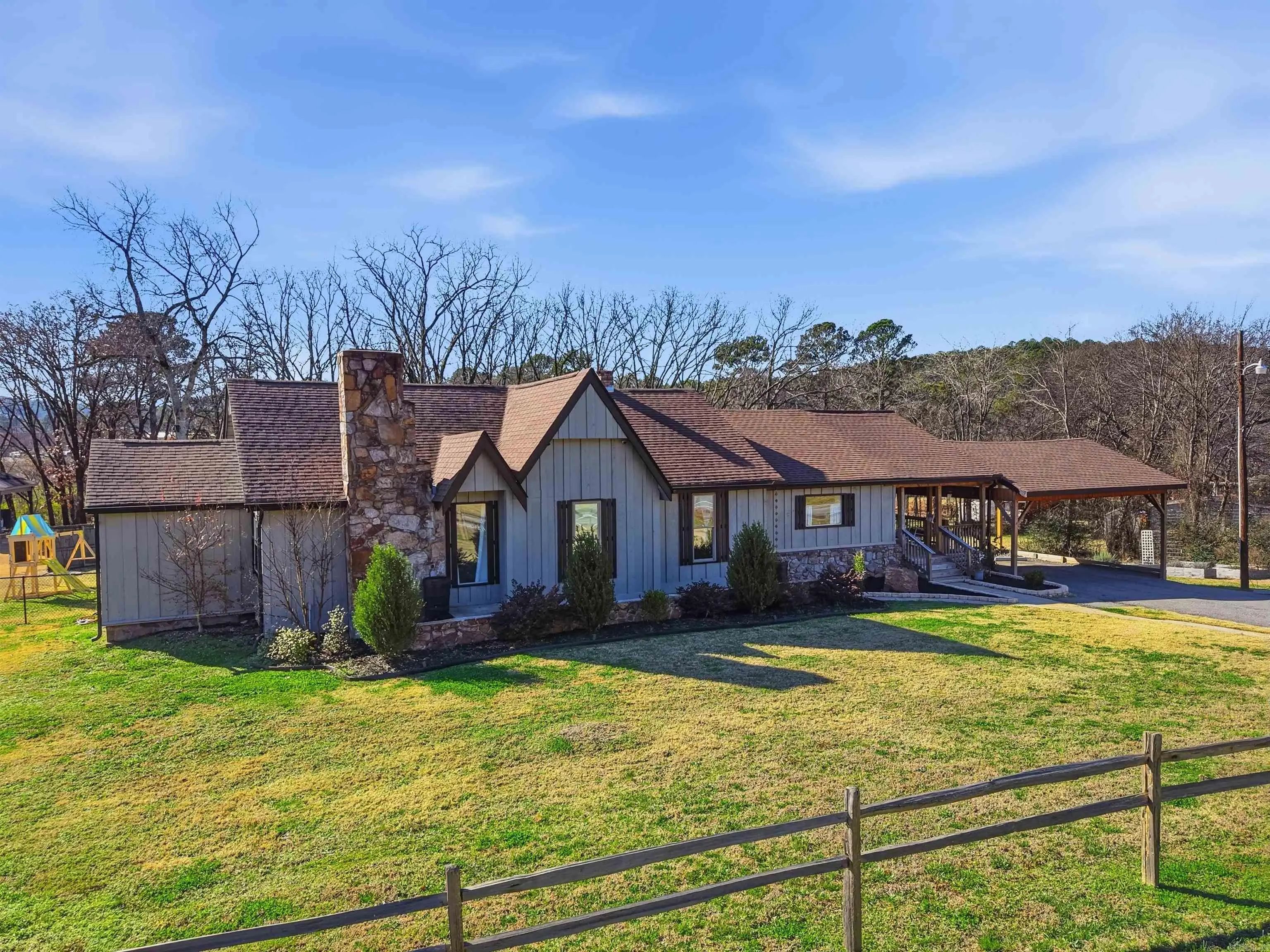 This property is a perfect blend of modern convenience and serenity - without being a "cookie cutter" style. Strategically located near Cantrell and Pinnacle Mountain - this fully fenced, gated home is a little under an acre with no HOA, perfect for a commute but spacious enough to never leave the house. There is a gorgeous kitchen with plenty of counter space, a deck, dedicated garden, covered parking, a primary bedroom with it's own hearth space and expansive walk in closet. The center bedroom was previously used as a media room with a projector screen. The common areas have an airy open concept with high vaulted ceilings - and with four bathrooms you never have to worry about sharing! Reach out to schedule your private showing.